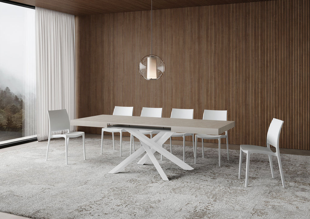 Tavolo Allungabile 140-244x90x77 cm Volantis Cashmere Telaio Bianco