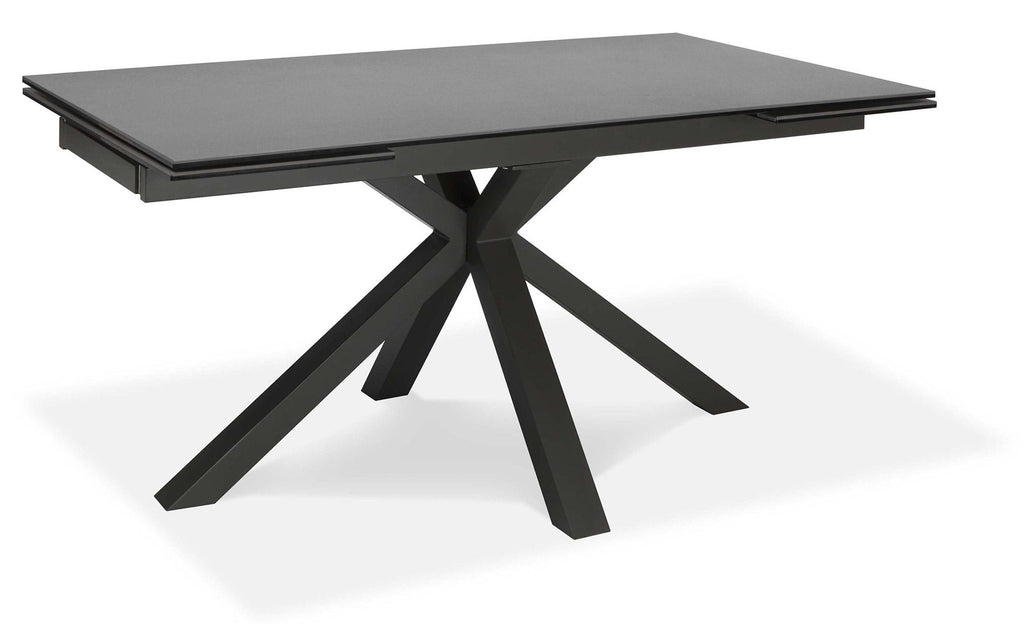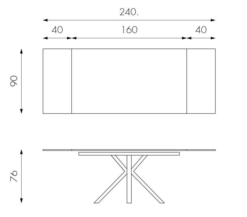 Ausziehbarer Tisch 160/240x90x76 cm aus Metall mit Keramikplatte auf grauem Glas