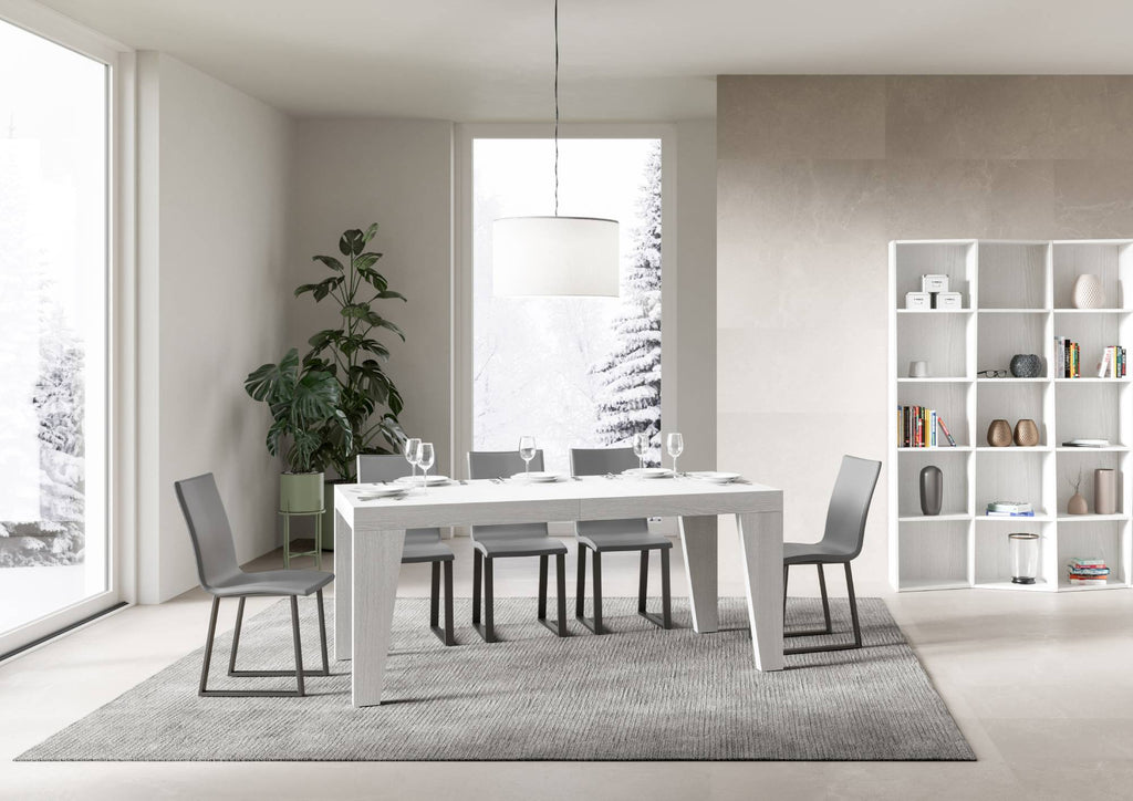 Tavolo allungabile Naxy da 200 cm, dal design geometrico essenziale, si adatta a qualsiasi stile di arredamento e si rivela la scelta ideale sia come tavolo da pranzo che come elemento d'arredo per il soggiorno, dove poter accogliere i propri ospiti con stile, il dettaglio estetico che fa la differenza, sono senza dubbio le gambe sagomate, le quali, oltre a conferire robustezza e solidità alla struttura decisamente leggera, slanciano la figura di questo tavolo, impreziosendone le linee semplici. Il tavolo allungabile Naxy è in grado di estendersi progressivamente fino a 460 cm capace di ospitare 18 persone.