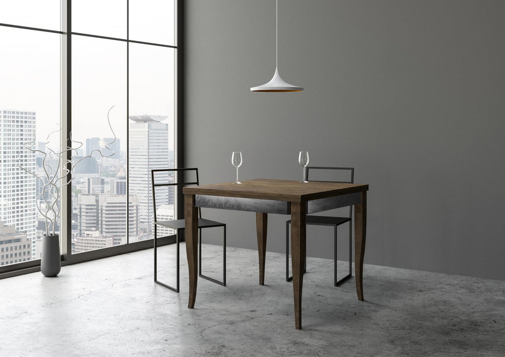Tavolo Sciabola Librox cm.90. Tavolo Sciabola Librox 90x90 apribile a 180x90. La caratteristica del Tavolo Sciabola Librox che lo differenzia dal Tavolo Libra è la struttura in metallo del telaio perimetrale. Il telaio in metallo dona così al Tavolo una robustezza e una rigidità senza pari, adattandolo ai più svariati utilizzi. E' un Tavolo quadrato 90x90 estremamente robusto e compatto nelle sue dimensioni originali. Il piano quadrato da 90 centimetri è composto da due piani. Facendolo scorrere sulle apposita guida, aprendolo a libro, in pochi secondi può essere trasformato in un Tavolo rettangolare da 180x90 raddoppiando l'area di utilizzo. Piano in microparticelle di legno e Telaio in acciaio verniciato. Realizzata interamente in Italia mediante l'utilizzo di materiali 100% italiani. Composta essenzialmente da tre parti: struttura portante in metallo verniciato, piano superiore in microparticelle di legno apribile a libro su guida in metallo e gambe in legno massello.