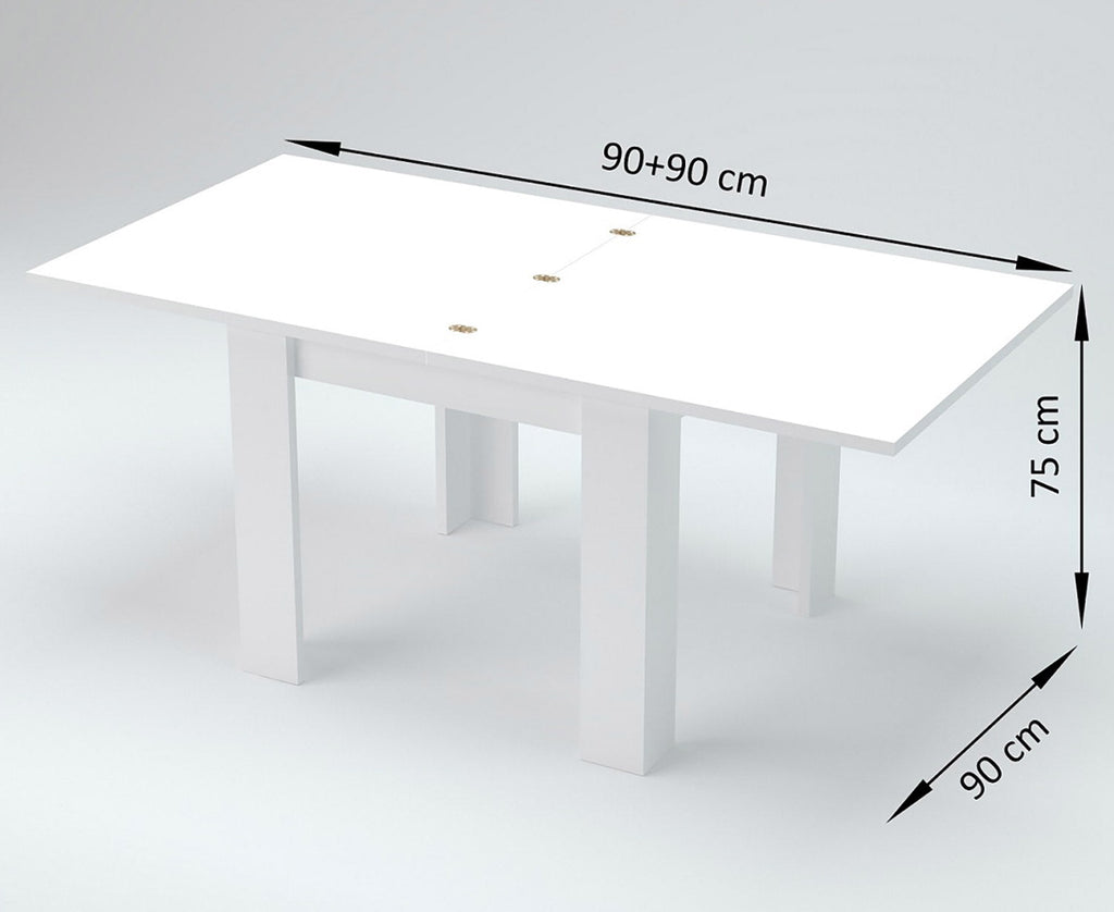 Il tavolo allungabile JESI da chiuso misura 90 cm, mentre aperto arriva fino ai 180 cm. Mobile che chiuso è adatto ad accogliere circa 4 persone, ben 8 persone se il tavolo è aperto. Il tavolo è massiccio e molto stabile con una superficie il legno massiccio di qualità. Il tavolo allungabile JESI a libro 90 cm viene consegnato con un pratico kit di montaggio e istruzioni, per poterla installare in modo semplice.