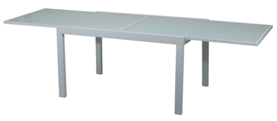 Ausziehbarer Gartentisch aus Aluminium mit Glasplatte Vorghini Selinunte White