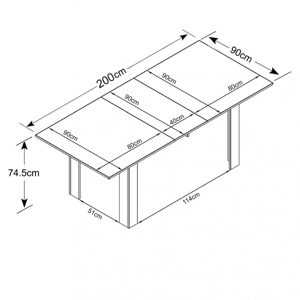 Ausziehbarer Tisch Gemma 160/200 x 90 x 75 h cm aus zweischichtiger Spanplatte in Anthrazit und Grau mit Zementeffekt