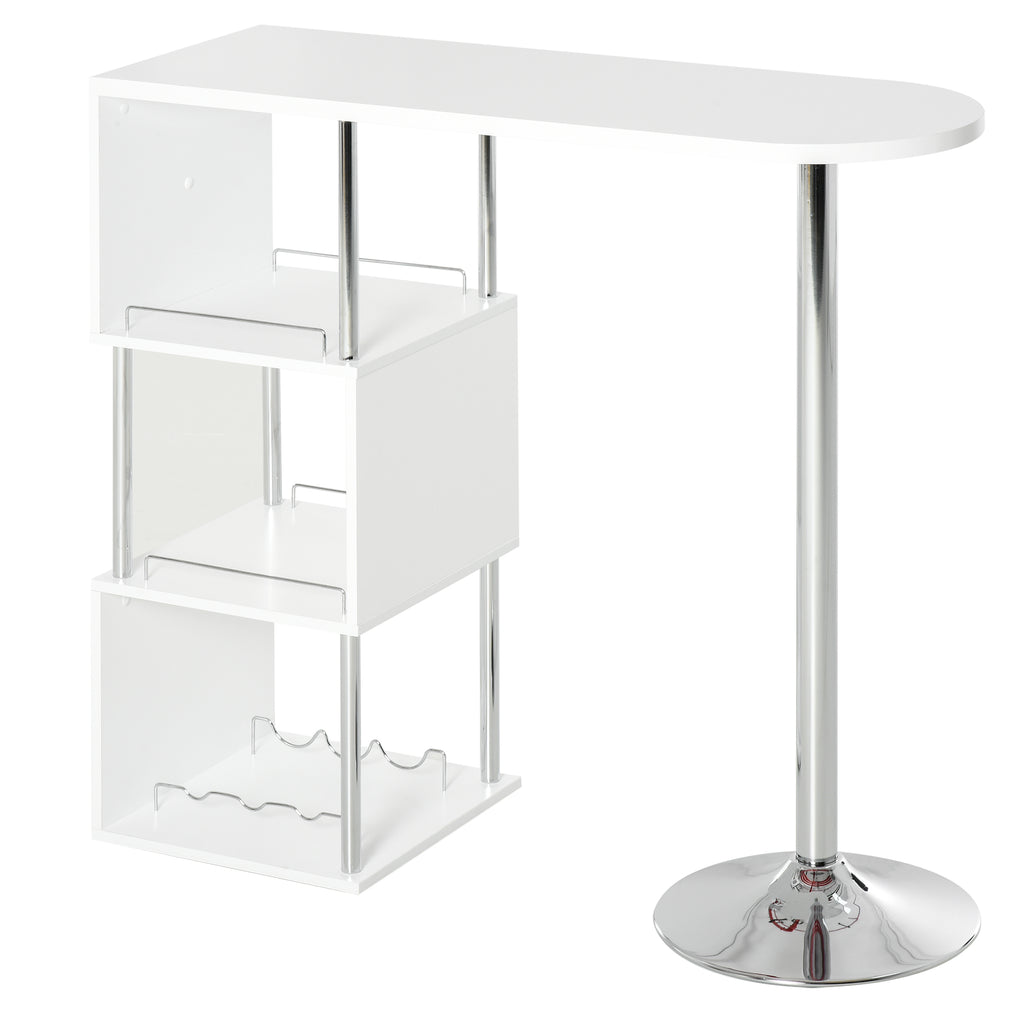 Sie möchten am Ende des Tages bei einem Glas Wein die Anspannung abbauen? Der hohe Tisch ist der ideale Ort, um mit Freunden anzustoßen oder einfach ein Abendessen zu zweit zu genießen. Die 3 Regale ermöglichen die Aufbewahrung beliebiger Gegenstände und ein Flaschenregal mit 3 Ablagen ist im Lieferumfang enthalten. Das minimalistische und elegante Design ermöglicht es Ihnen, diesen Tisch in jedem Raum zu platzieren und ihn Ihren Bedürfnissen entsprechend zu nutzen.