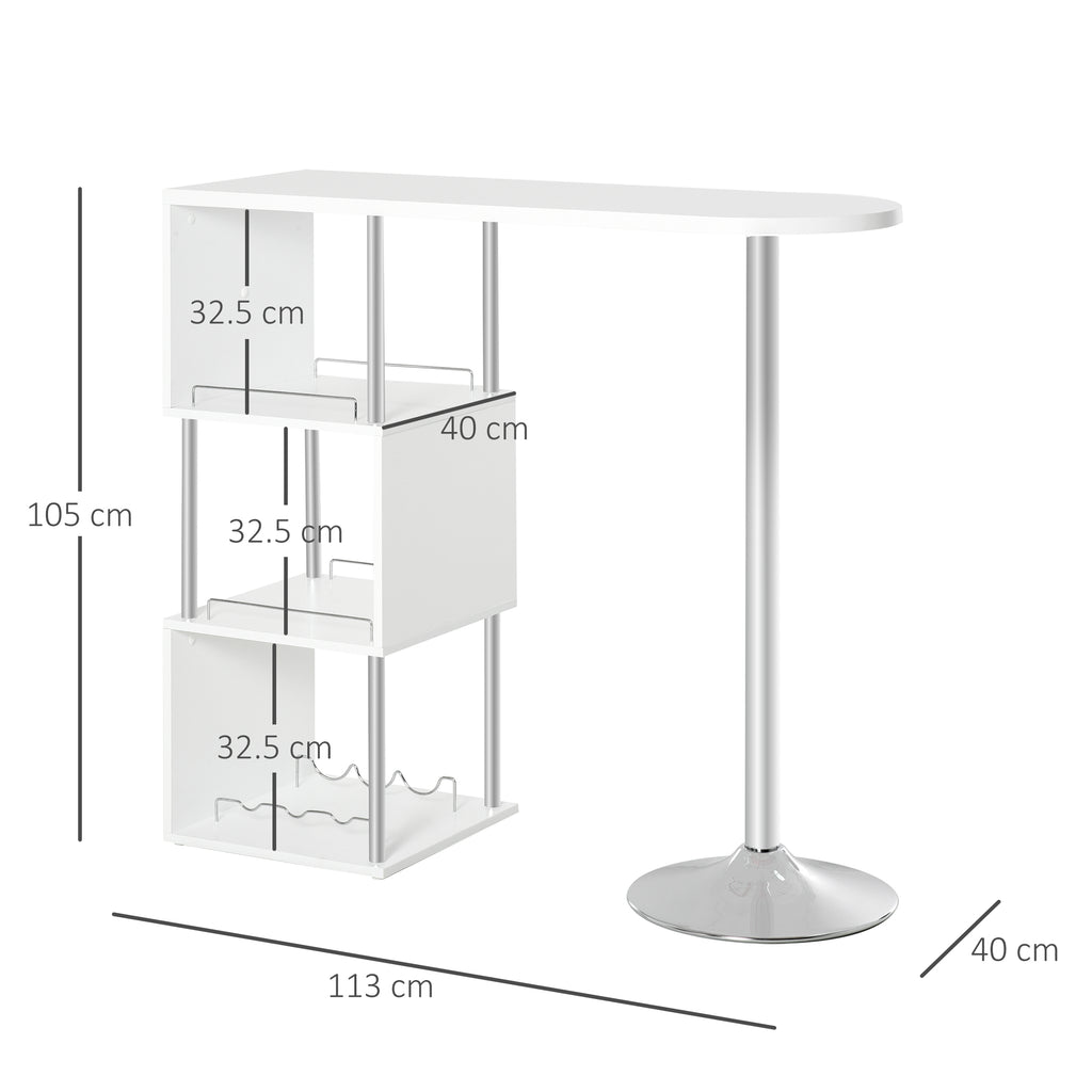 Hoher Bartisch 113 x 40 x 105 cm mit Regalen und weißem Flaschenhalter