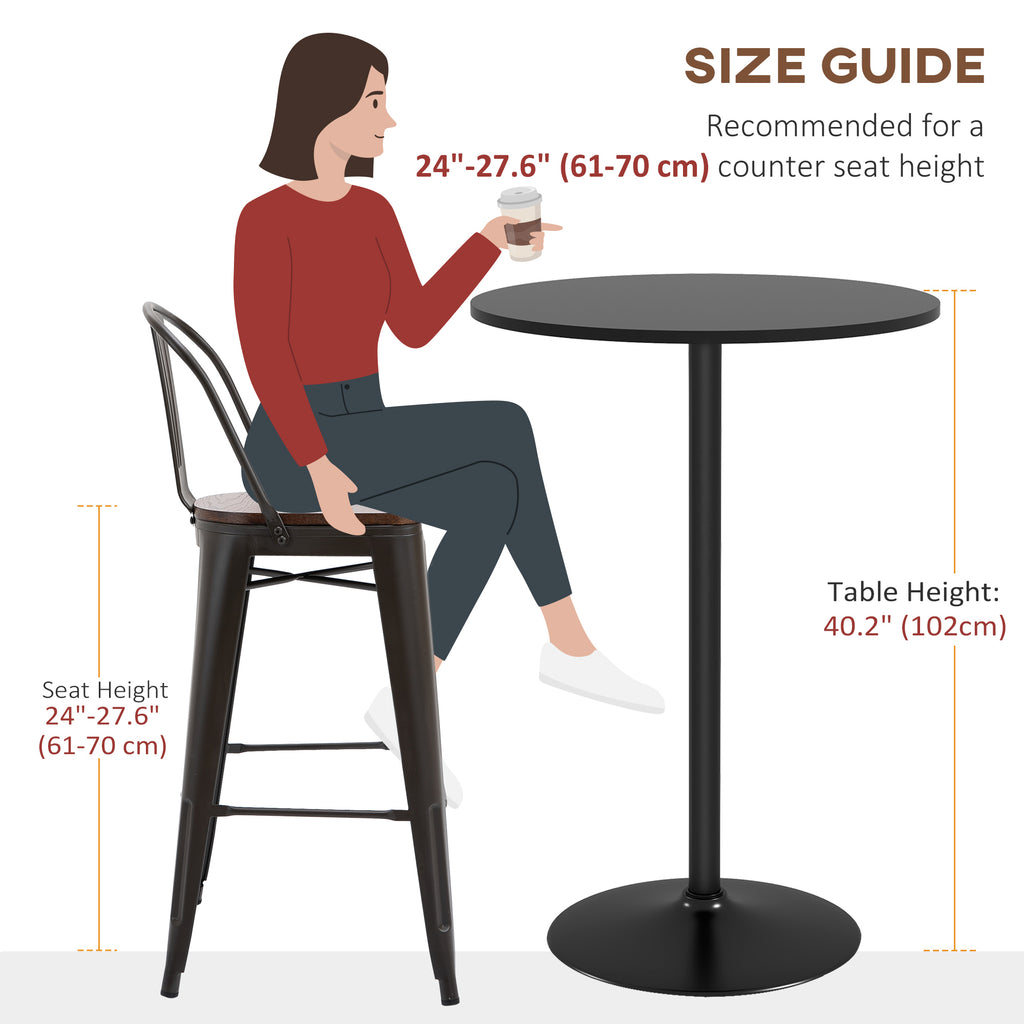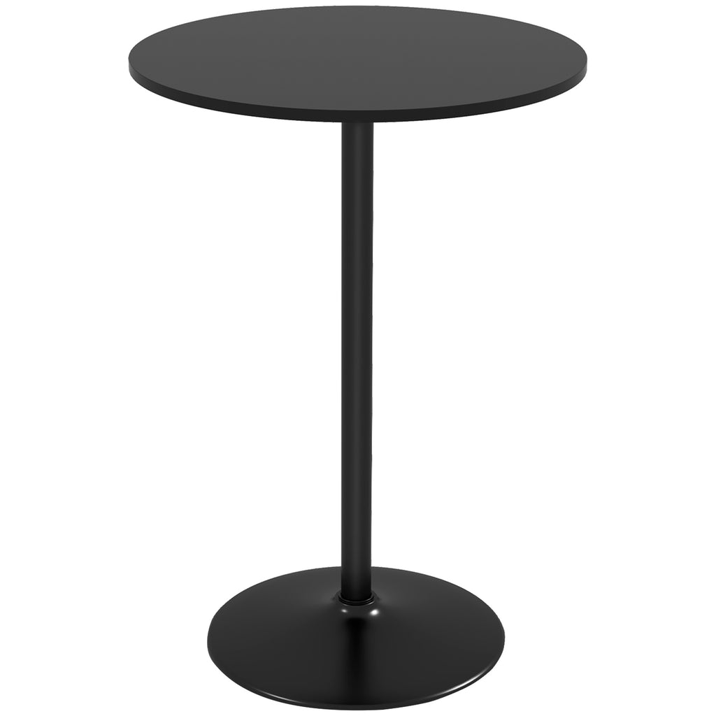 Tavolo Alto da Bar Moderno Rotondo con Base Ø70x102 cm in Acciaio e Piano in MDF Nero