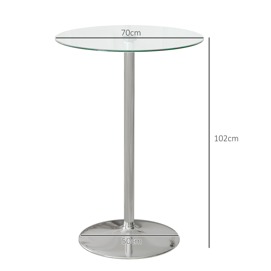 Tavolo Alto da Bar Moderno Rotondo con Base Ø70x102 cm in Acciaio e Piano in Vetro Trasparente