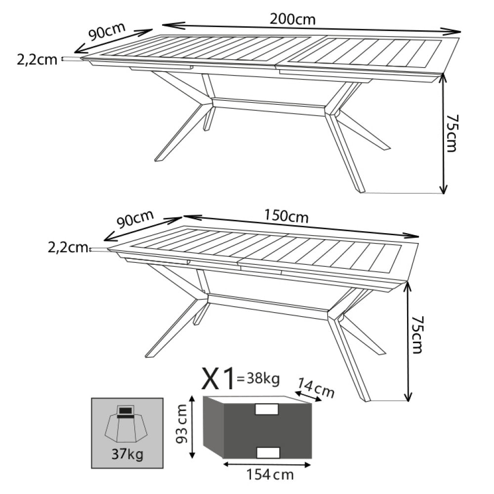 Bali Tisch 150/200x90x75 h cm aus braunem Akazienholz