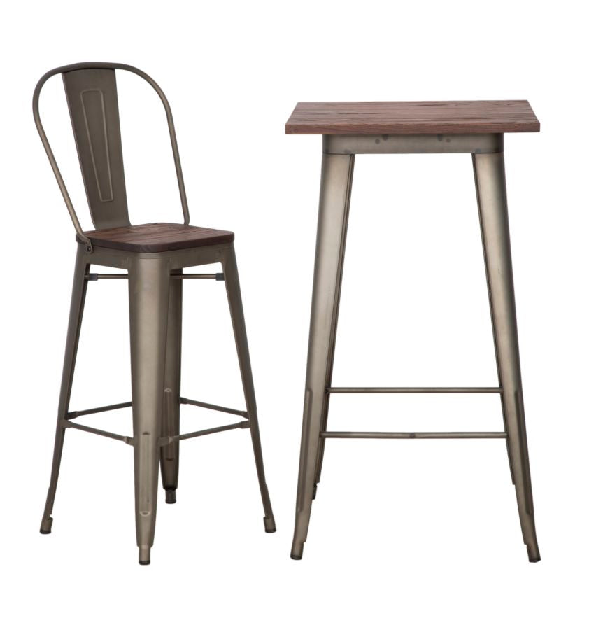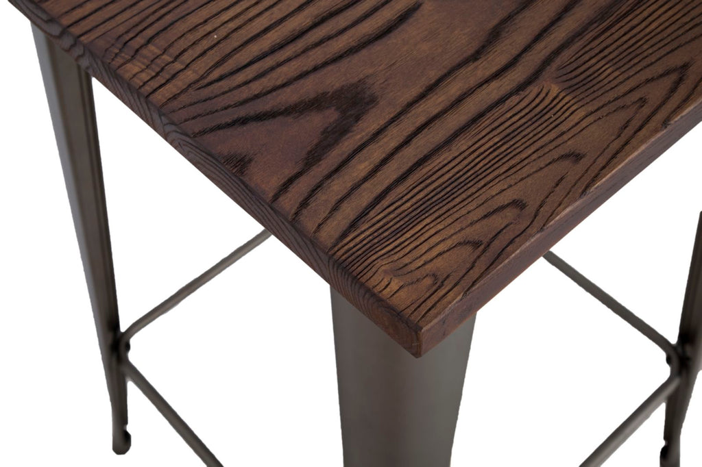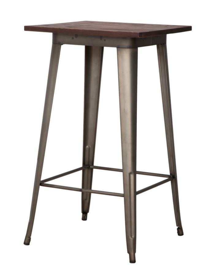 Detroit Stehtisch quadratisch 60 x 60 x 105 cm aus Eisen und ELM-Holz