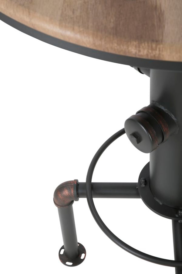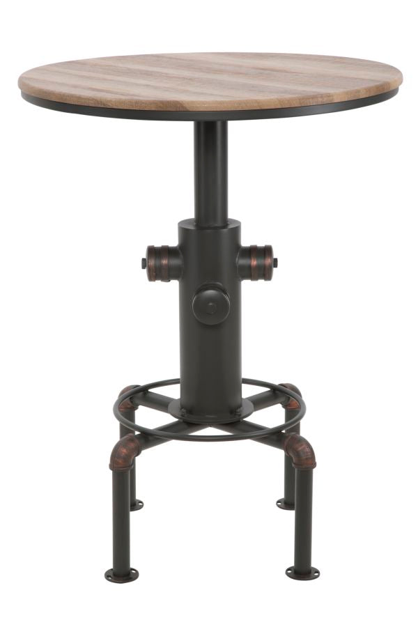 Runder Bartisch aus Metall und MDF. Prächtiges Industriezubehör, das sich problemlos in Ihr Wohnzimmer oder Ihren Geschäftsraum einfügt. Holz und Eisen kommen in ihrer modernsten Form zum Ausdruck.