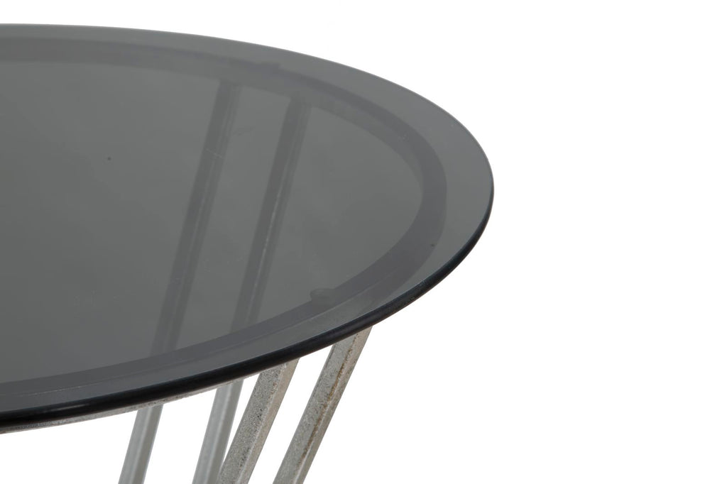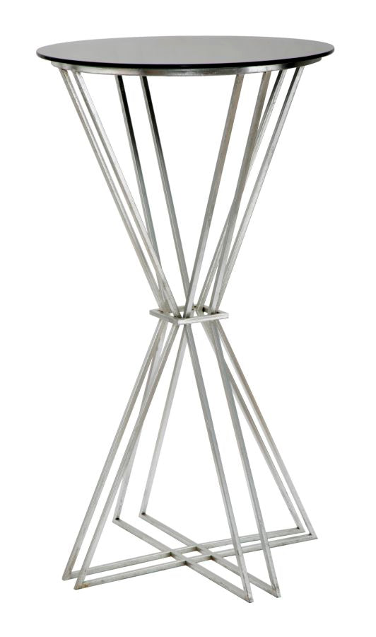 Oslo Bartisch Ø60x105 cm aus Eisen und Silber und schwarzem Glas