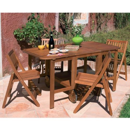 Tisch mit 4 platzsparenden Holzklappstühlen für Gartenmöbel im Freien