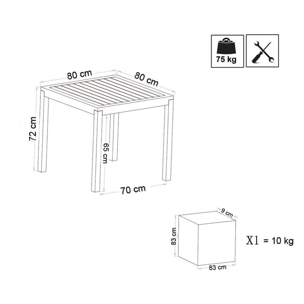 Cuba Tisch 80x80x74 h cm aus taubengrauem Aluminium