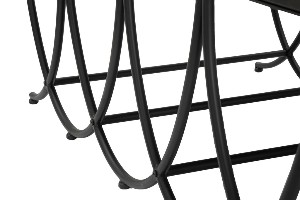 Eleganter Couchtisch aus schwarzem Metall mit schwarzer Platte aus gehärtetem Glas. Die einfachen und geometrischen Linien machen es zu einem unverzichtbaren Element für jede Umgebung.