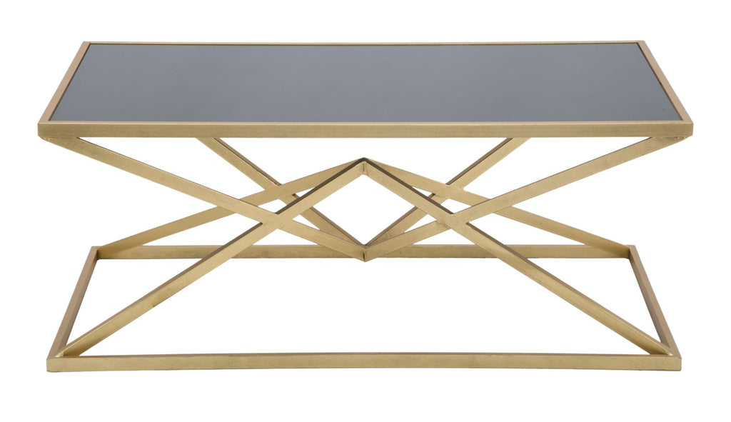 Piramid Couchtisch 110x60x45 cm in Eisen und Gold und schwarzem Glas