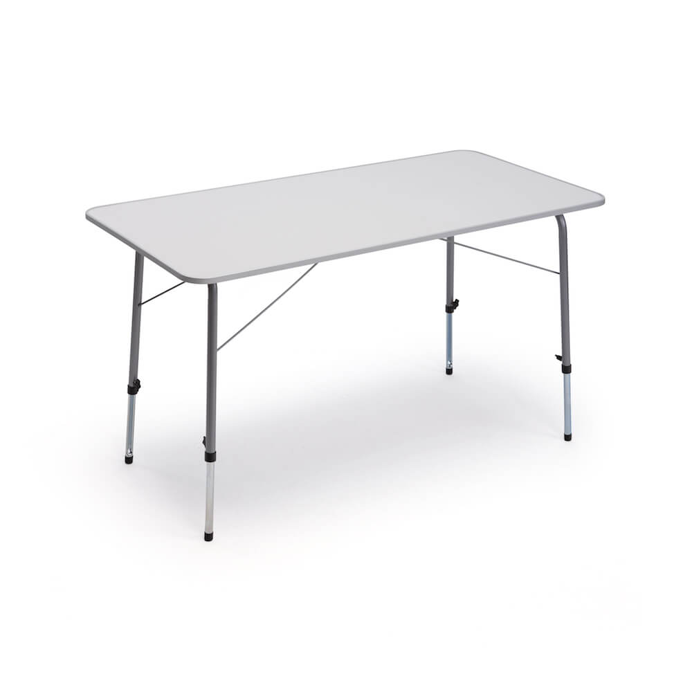 Rechteckiger Tisch mit klappbaren und höhenverstellbaren Beinen, grau pulverbeschichtete Eisenstruktur, weiße MDF-Tischplatte, 120 x 60 x H 50/69 cmTaddei Camp 120 Campingtisch aus MDF mit verstellbaren und klappbaren Beinen