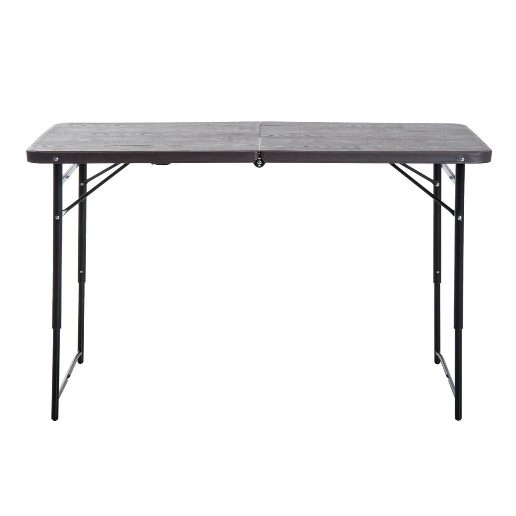 Dieser langlebige und praktische Tisch ist das perfekte Accessoire für Camping oder Picknick. Er hat einen robusten pulverbeschichteten Metallrahmen und eine Kunststoffplatte in Holzoptik, ist bis zu 100 kg belastbar und bietet Ihnen den Platz, den Sie für Ihre Outdoor-Aktivitäten benötigen. Sie können es zu einer Aktentasche zusammenfalten und bequem zu Ihrem nächsten Ziel mitnehmen.