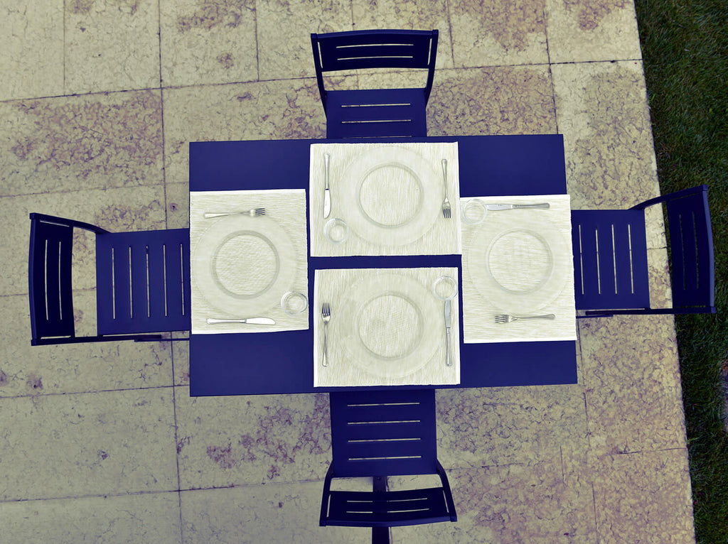 Stapelbarer Tisch mit vorverzinkter Stahlkonstruktion und anthrazitfarbener Polyesterfarbe. 2 verstellbare Füße.