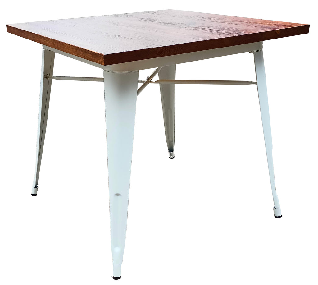 Tavolo da Giardino 80x80x75 cm in Metallo Top in Legno Industrial Bianco