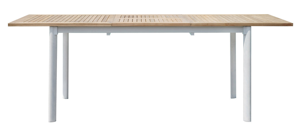 Ausziehbarer Gartentisch 150-210x90x74 cm in weißer Aluminium-Teakplatte