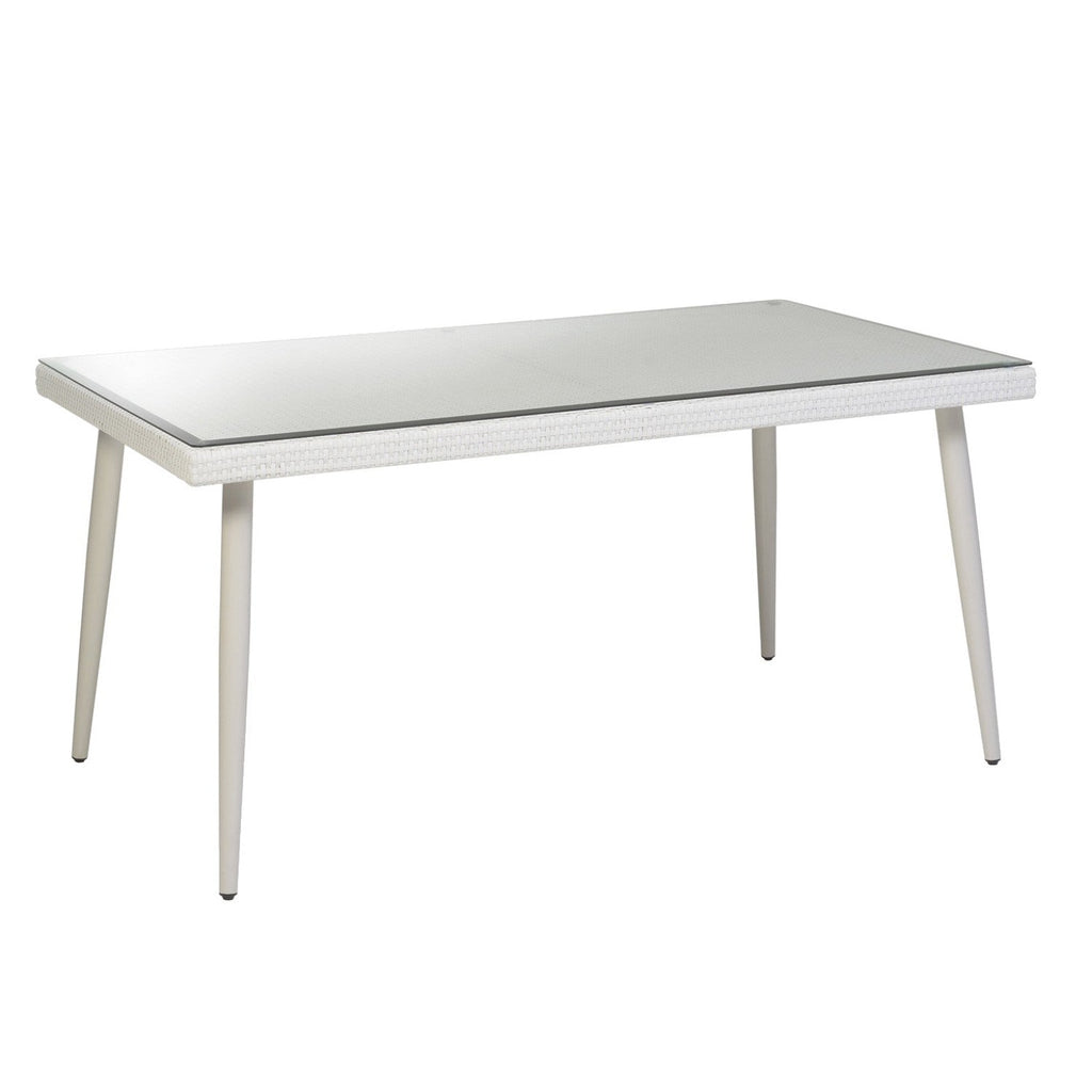 Polyrattan-Tisch Adila Rechteckig Cremeweiß mit Glas cm160X90H77