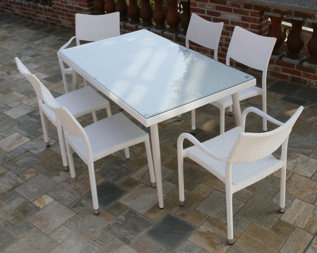 Gartentisch aus Polyrattan mit Glas 160x90H77cm Adami Adila Cremeweiß