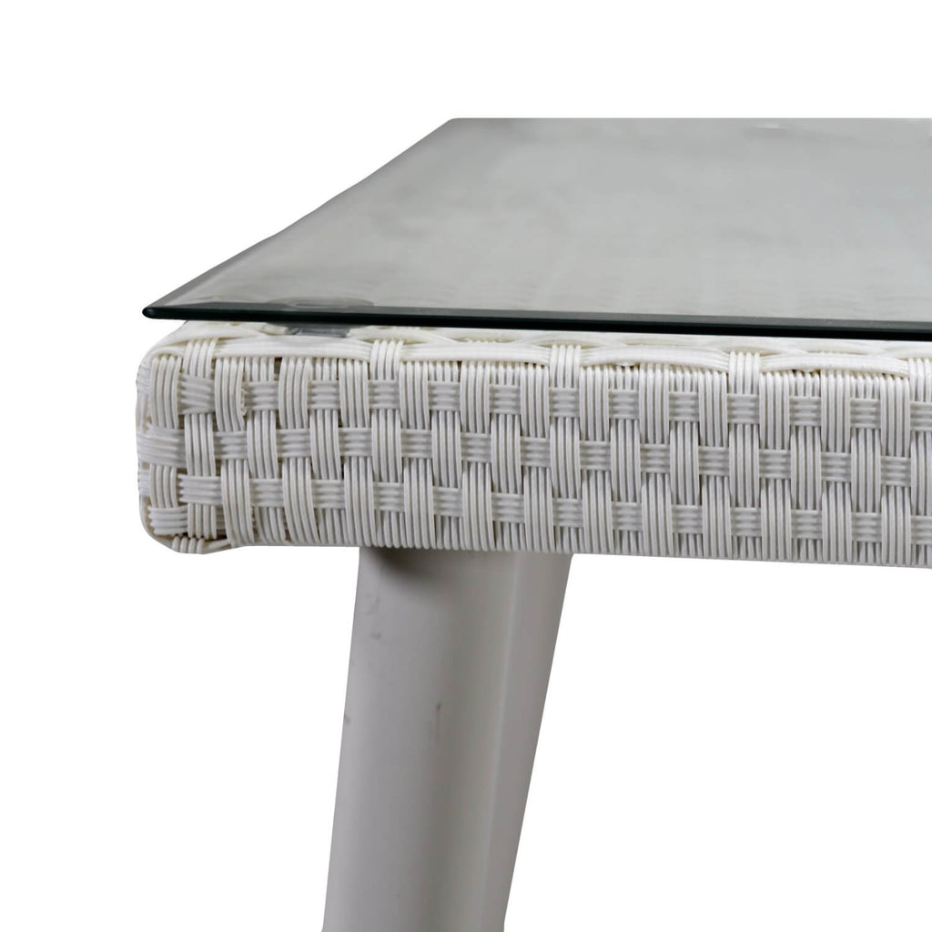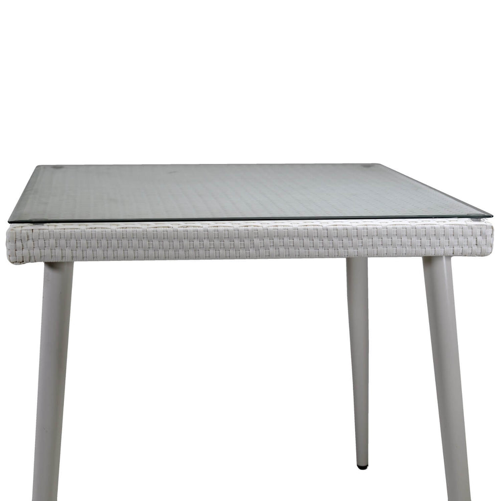 Polyrattan-Tisch Adila Quadratisch Cremeweiß mit Glas cm80X80H77