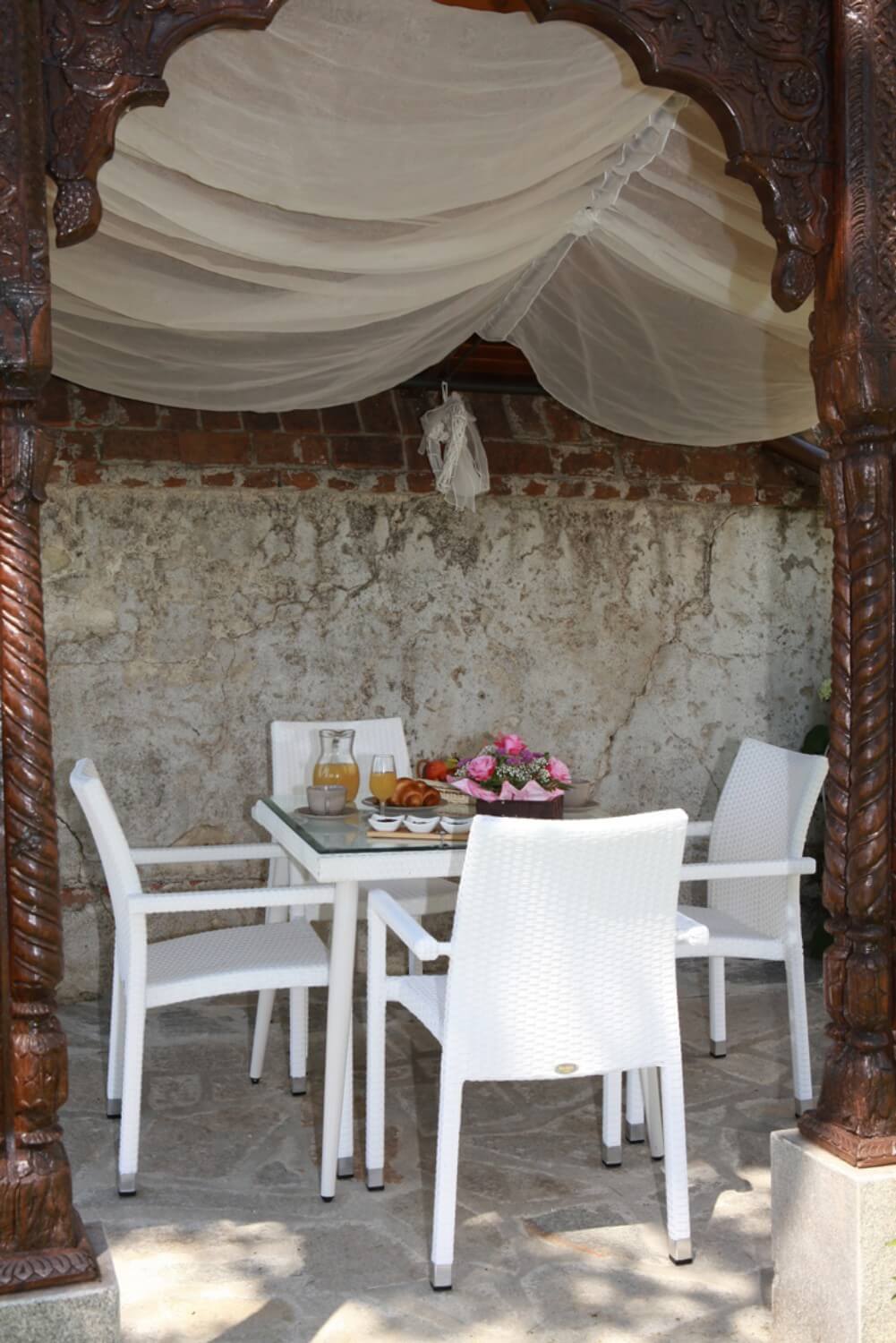 Gartentisch aus Polyrattan mit Glas 80x80H77cm Adami Adila Cremeweiß