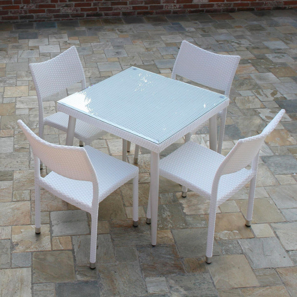 Polyrattan Tisch Adila Quadratisch Cremeweiß Mit Glas cm90X90H77