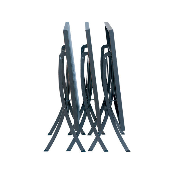 Klapptisch mit vorverzinkter Stahlkonstruktion und anthrazitfarbener Polyesterfarbe.