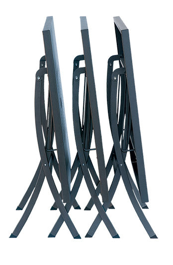 Klapptisch mit vorverzinkter Stahlkonstruktion und anthrazitfarbener Polyesterfarbe.