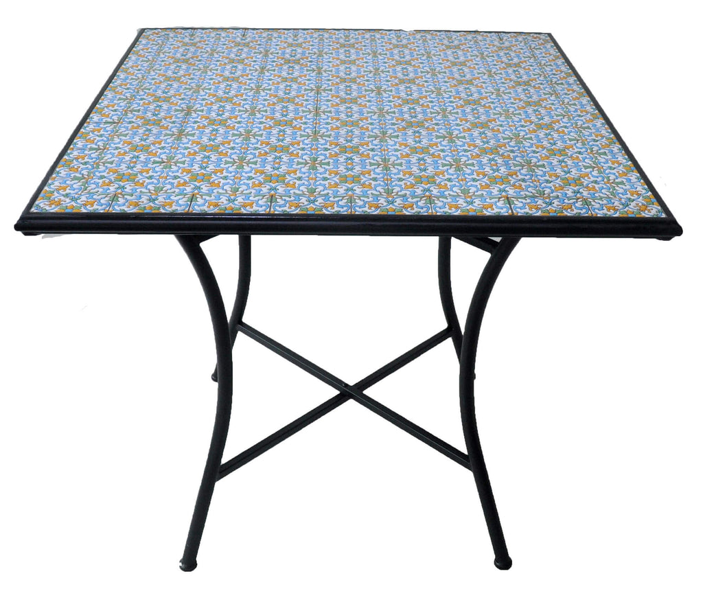 Quadratischer Gartentisch aus Eisen mit Soriani-Amalfi-Mosaikplatte