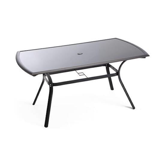 Rechteckiger Tisch, Stützflächenstruktur aus schwarz pulverbeschichtetem Aluminium (mattes Finish), Beinstruktur aus schwarz pulverbeschichtetem Eisen (mattes Finish), Stützfläche aus 5 mm schwarzem gehärtetem Glas, Strukturabschnitt 47 mm x 18 / 45 x 25 , cm 150 x 90 x h72Taddei Alcor 150 Rechteckiger Gartentisch aus Aluminium mit Glasplatte
