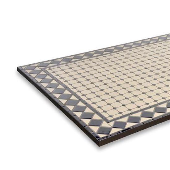 Rechteckiger Tisch mit Gestell aus verzinktem und schwarz pulverbeschichtetem Eisen (matt), Platte aus Mosaik/Keramik, cm. 160X90X75.Taddei Norwich 160 Rechteckiger Gartentisch aus Eisen mit Mosaik-Keramikplatte