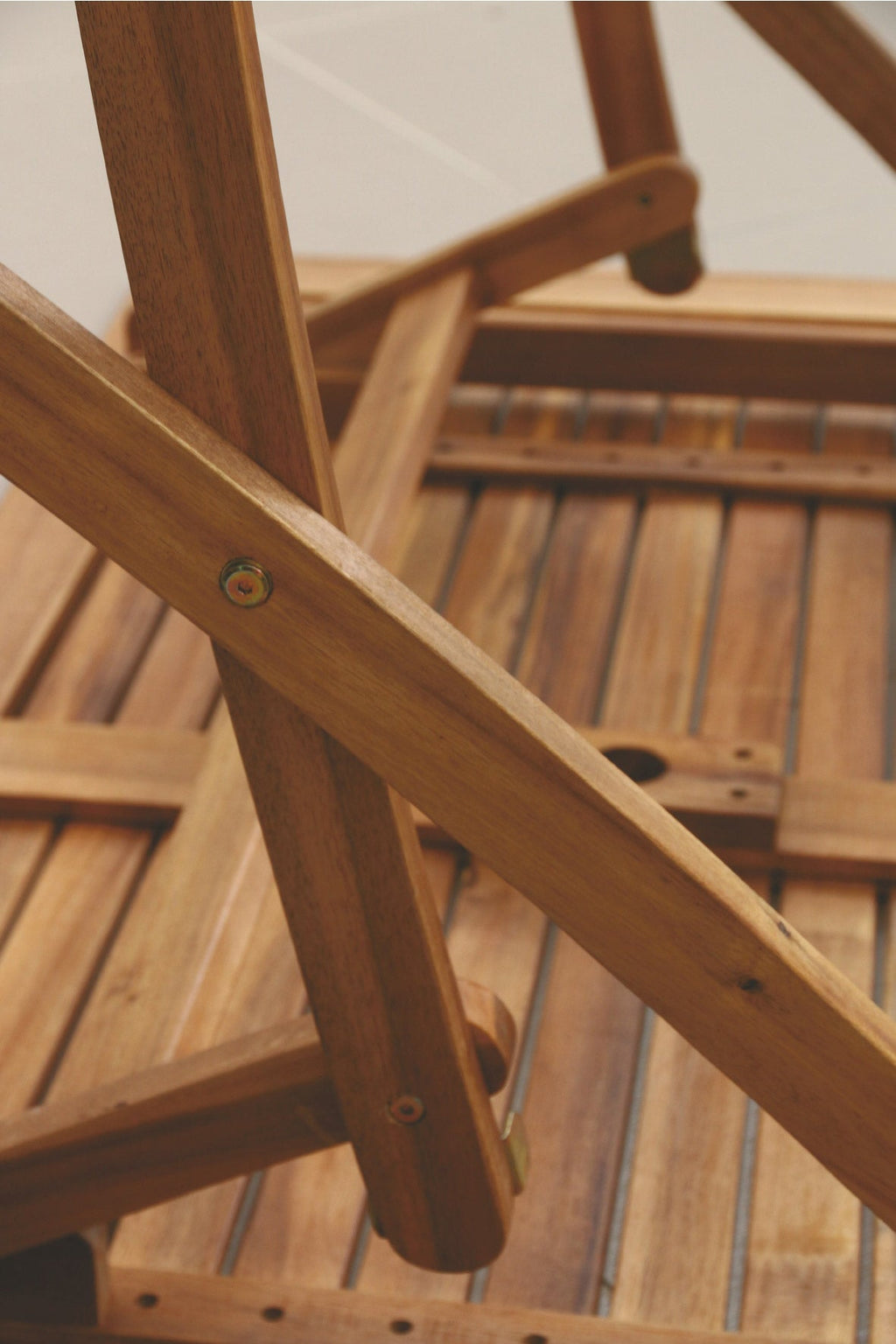 Akazie ist ein sehr edles Holz, das sich durch eine dünne Faser auszeichnet, die besonders feuchtigkeitsbeständig ist, was diese Holzart perfekt für die Verwendung bei der Herstellung von Outdoor-Accessoires macht.