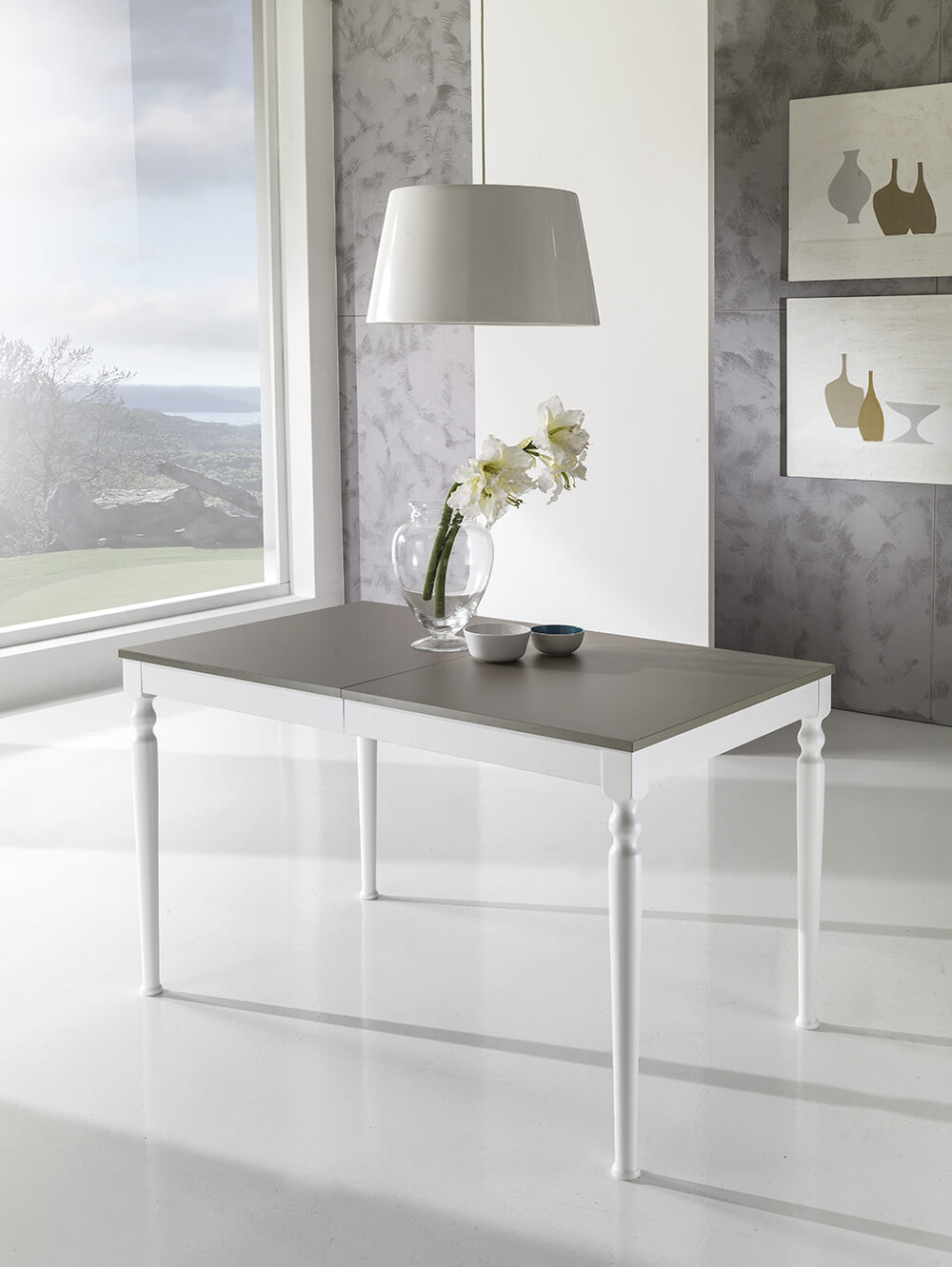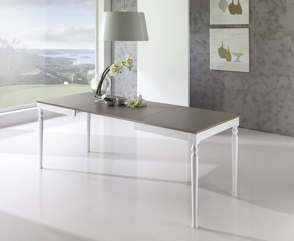 Ausziehbarer Esstisch aus Holz und Melaminplatte 130/210 x 80 x 76 cm TFT Kim White Ash und Grey Beige
