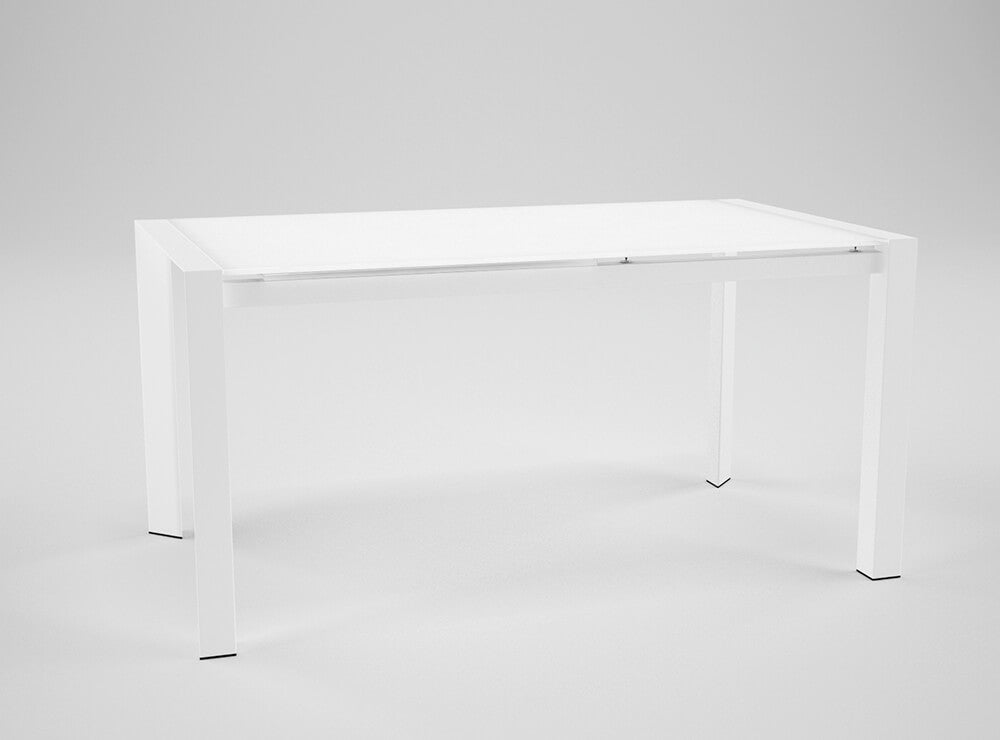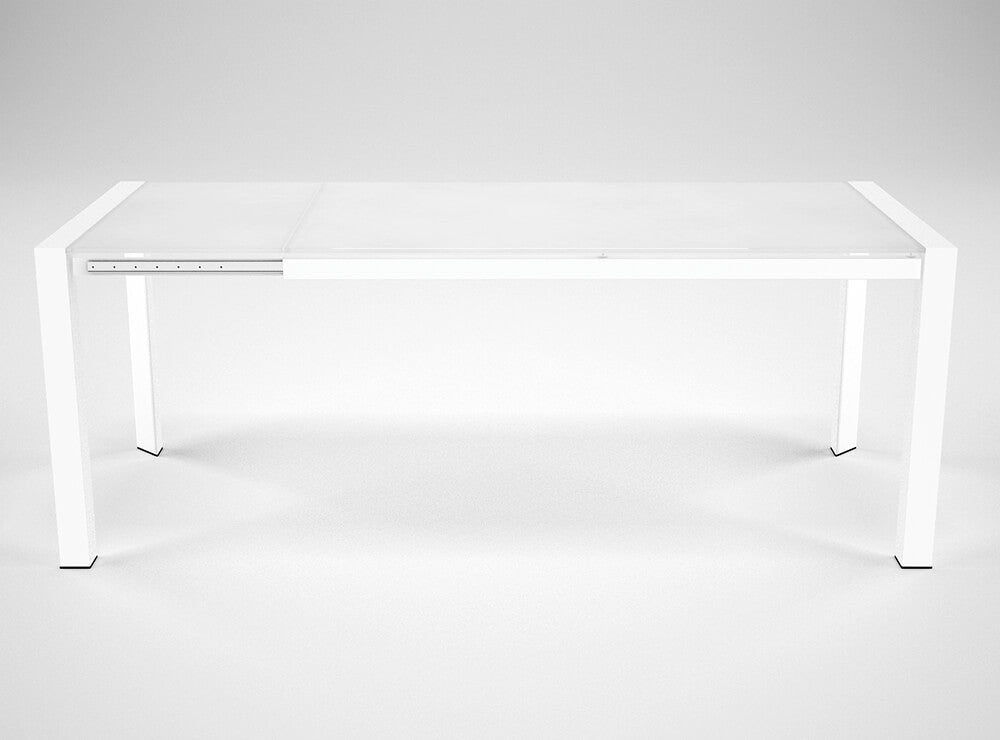 Ausziehbarer Esstisch aus Metall und Glasplatte 160/210 x 90 x 76 cm, weißes TFT-Glas