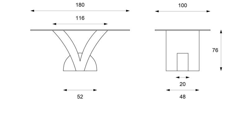 Feststehender Steintisch 180 x 100 x 76 cm mit transparenter Glasplatte
