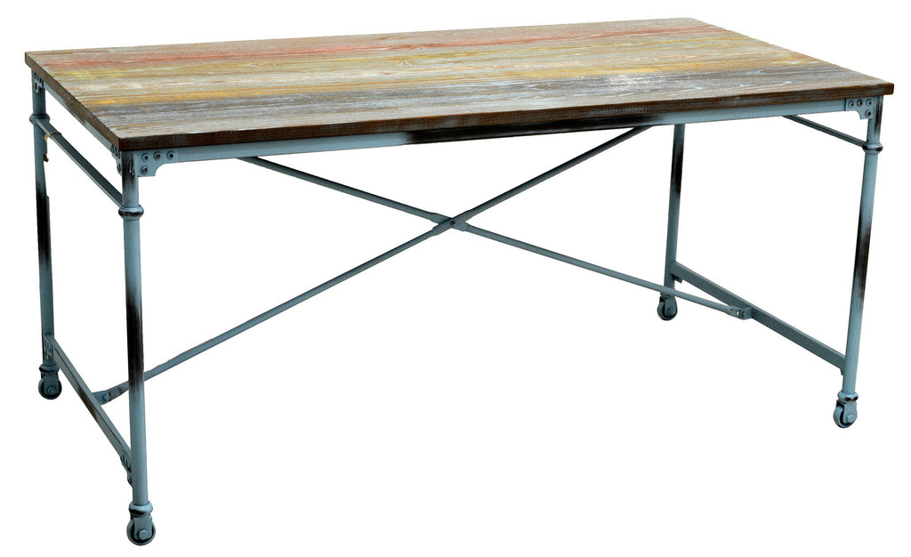 Adami Antikblauer rechteckiger Tisch aus Metall und Holz