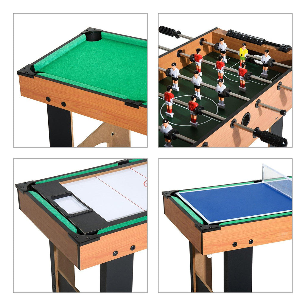 4 in 1 Multi-Spieltisch Kicker, Hockey, Tischtennis und Billard aus MDF-Holz 87 x 43 x 73 cm