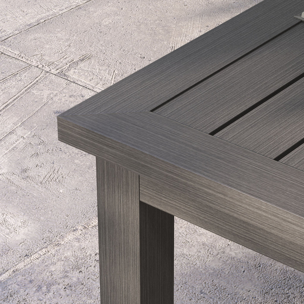 Questo tavolino da esterni porta un tocco di novità nei tuoi spazi all'aperto. Realizzato con un solido telaio in alluminio con trattamento antiruggine, il tavolino rettangolare è dotato di superficie con finitura effetto legno, che dona un aspetto naturale. Grande e capiente, questo tavolino da caffè è perfetto da usare sia all'aperto sia in casa!