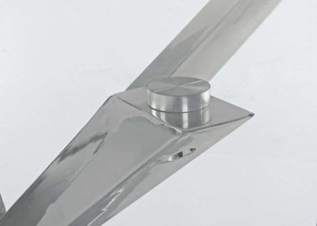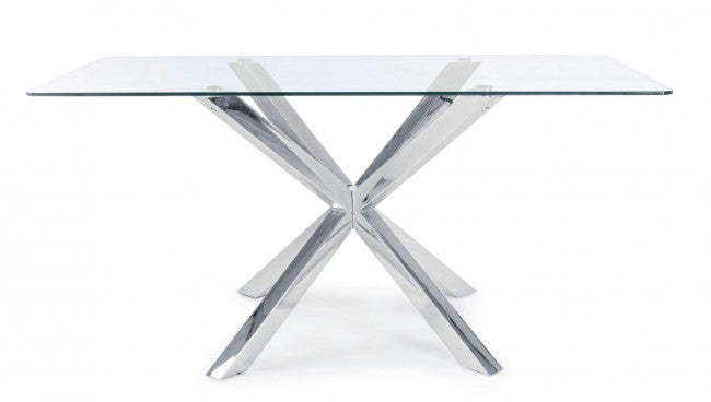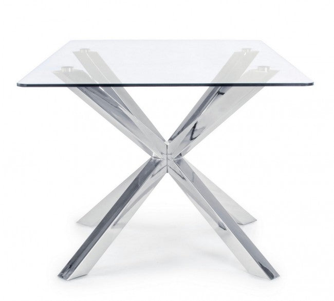 Rechteckiger Tisch mit Glasplatte und Stahlbein 160x90 in Glas fixiert