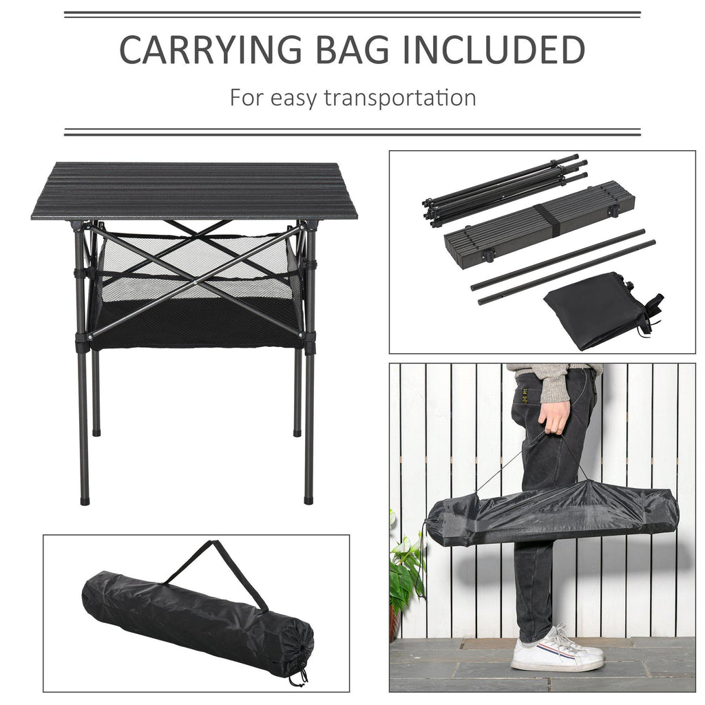 Klappbarer Campingtisch 70x70x69 cm aus schwarzem Aluminium