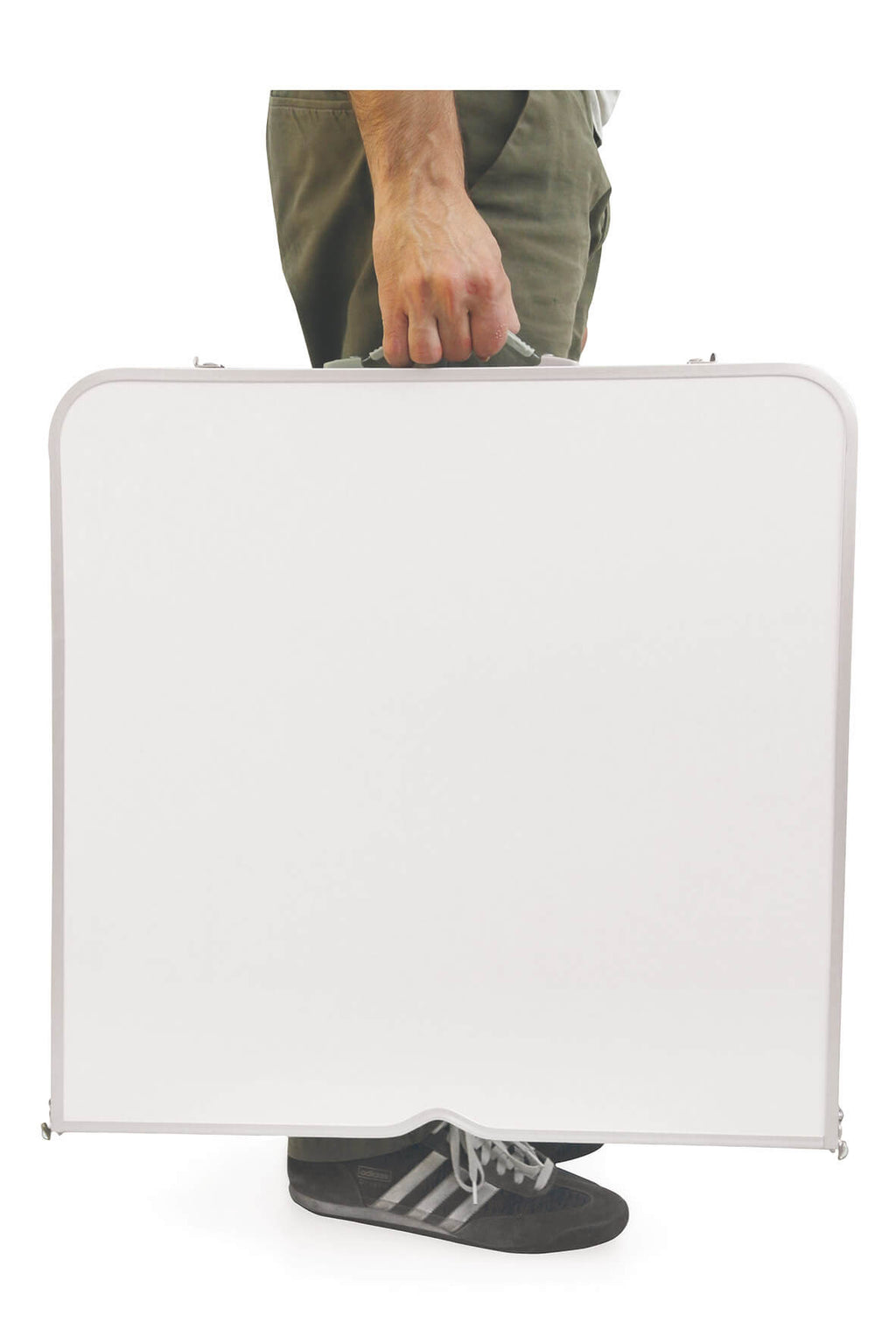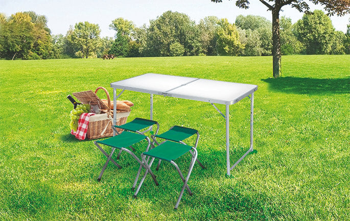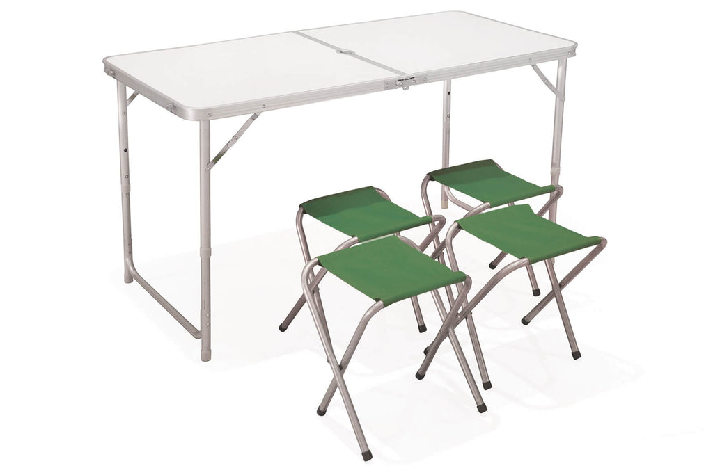 Der Tisch und die Hocker können in einem einzigen ultraleichten Koffer transportiert werden, der sich nach dem Öffnen in einen Tisch verwandelt, der geräumig genug ist, um alles aufzunehmen, was Sie brauchen.