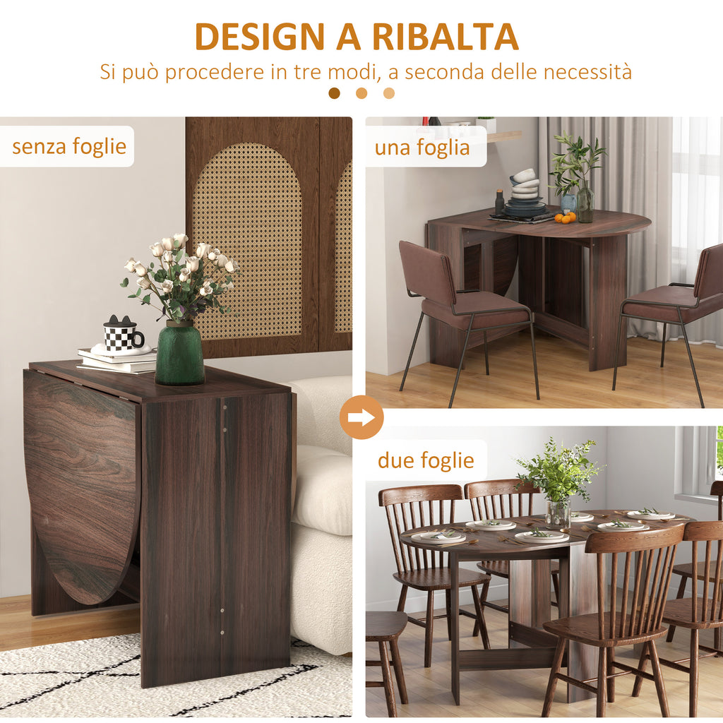 Tavolo Pieghevole Salvaspazio con 2 Ribalte Ovale 163x80x75 cm in Legno Marrone