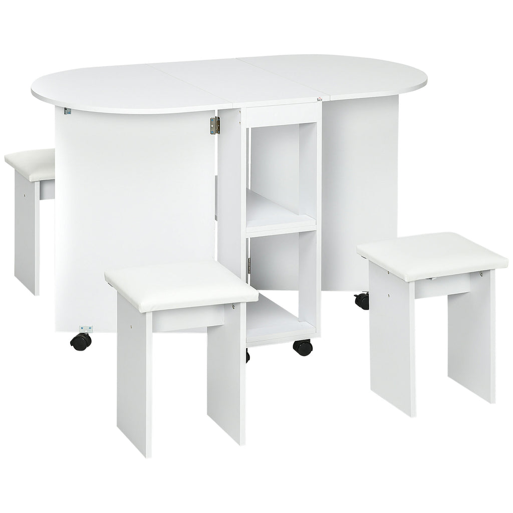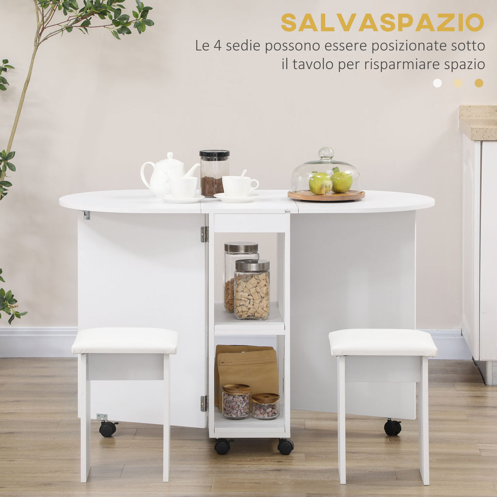 Tavolo Pieghevole Salvaspazio con 4 Sgabelli in Legno Truciolato Bianco