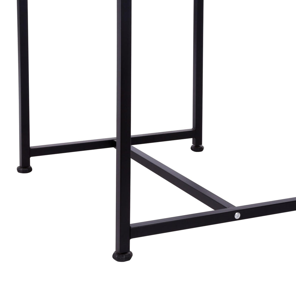 Gestell aus Metall mit stabiler Holzplatte.