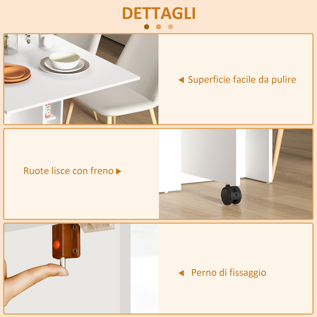 - DUREVOLE: Realizzato in truciolare solido e finitura in melamina, il tavolo da pranzo resiste all'uso e si pulisce facilmente. Grazie alle cerniere in acciaio e ai perni, ogni ribalta è supportata stabilmente e le ruote garantiscono facile movimento