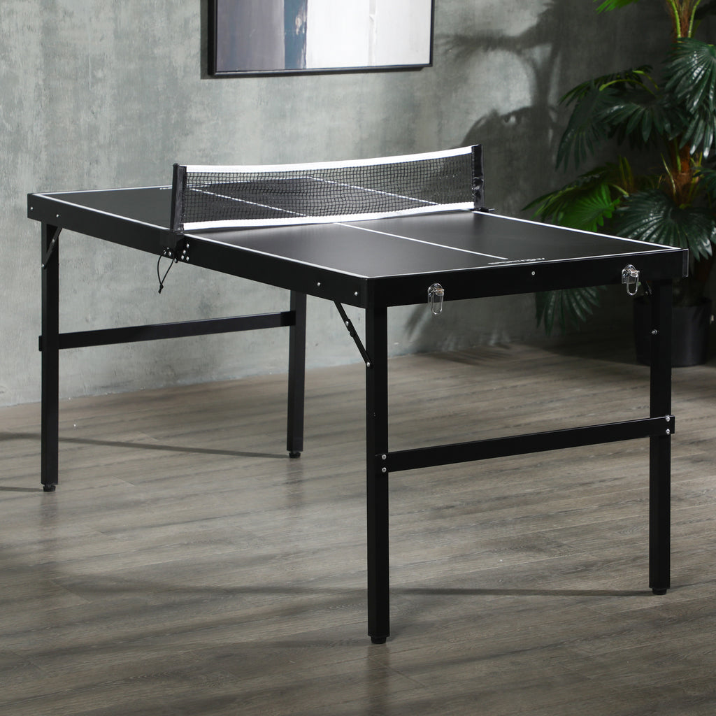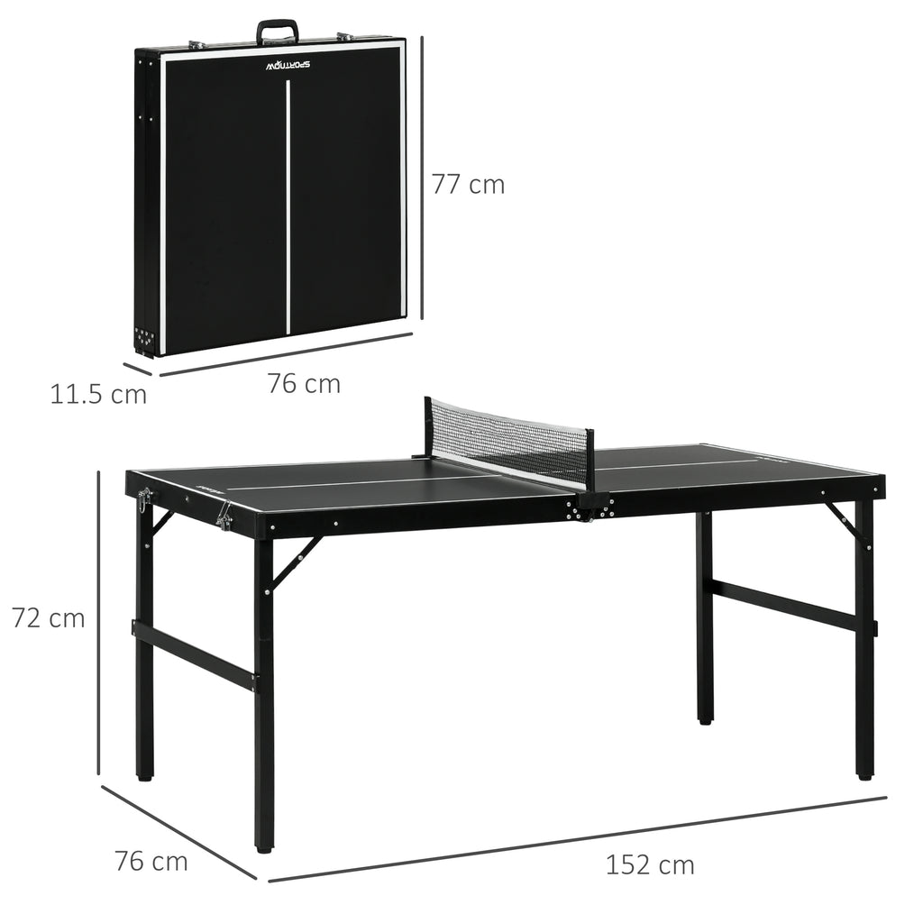 Tavolo Ping Pong Pieghevole 152x76x72 cm con Maniglia da Trasporto in Alluminio e Legno Nero