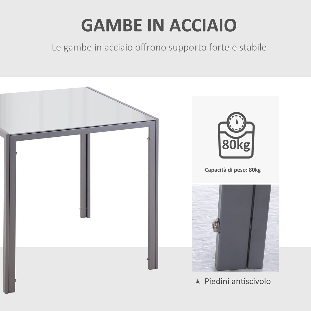 Quadratischer Tisch 75x75x75 cm aus Metall und grauem gehärtetem Glas